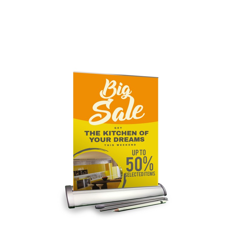 Make a statement, advertise new services, or reach customers on their level with these attractive desktop roller banners, which make a strong yet subtle addition to your checkout desks or countertop displays.